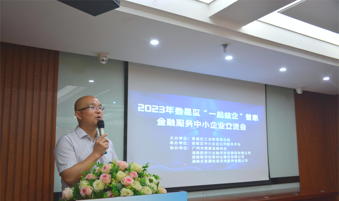 為深入貫徹落實工信部“一起益企”中小企業(yè)服務(wù)行動,進(jìn)一步加強中小微企業(yè)金融基礎(chǔ)知識的了解,提升對金融產(chǎn)品和服務(wù)的認(rèn)知能力,著力促進(jìn)制造業(yè)和中小微企業(yè)融資,助力企業(yè)高質(zhì)量發(fā)展,4月21日,由婁星區(qū)工業(yè)和信息化局主辦,婁星區(qū)中小企業(yè)公共服務(wù)平臺承辦,廣州市普惠金融協(xié)會、湖南聯(lián)邦興業(yè)融資擔(dān)保集團有限公司等服務(wù)機構(gòu)協(xié)辦的2023年婁星區(qū)“一起益企”普惠金融服務(wù)中小企業(yè)交流會在吉星金融大廈六樓舉行。