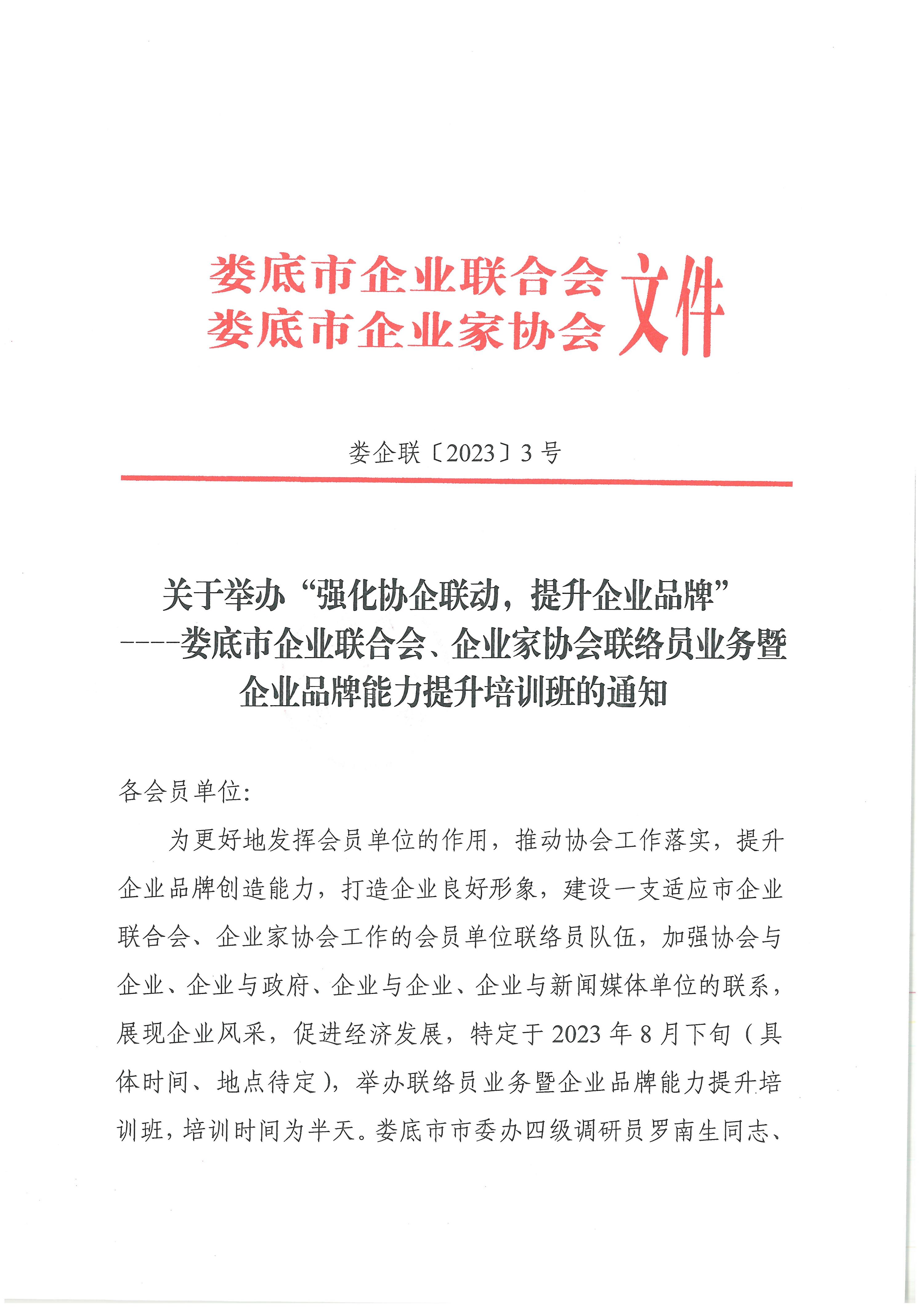 婁底市企業(yè)聯(lián)合會(huì)、企業(yè)家協(xié)會(huì)聯(lián)絡(luò)員業(yè)務(wù)暨企業(yè)品牌能力提升培訓(xùn)班的通知