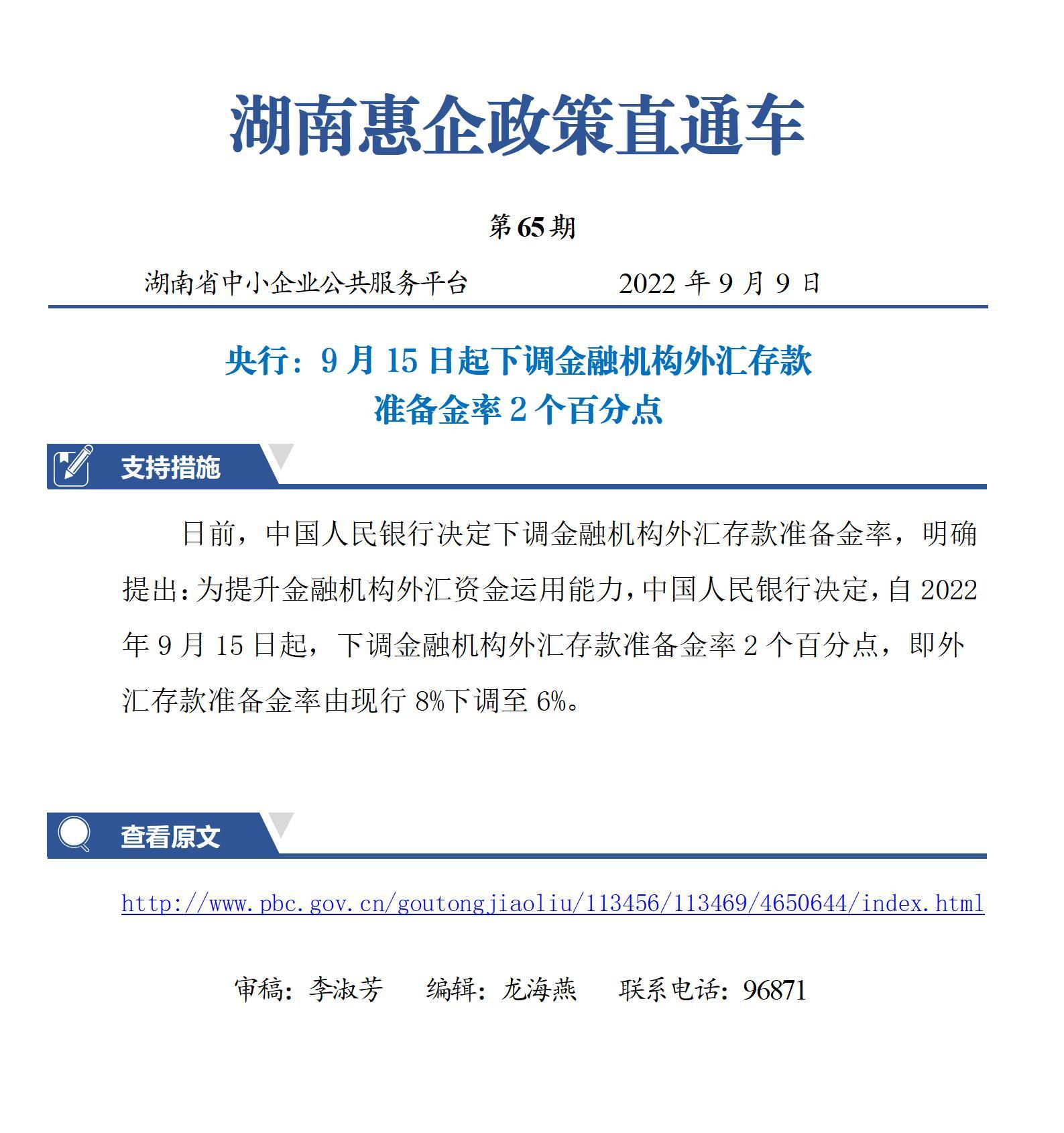 央行:9月15日起下調金融機構外匯存款準備金率2個百分點