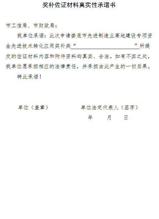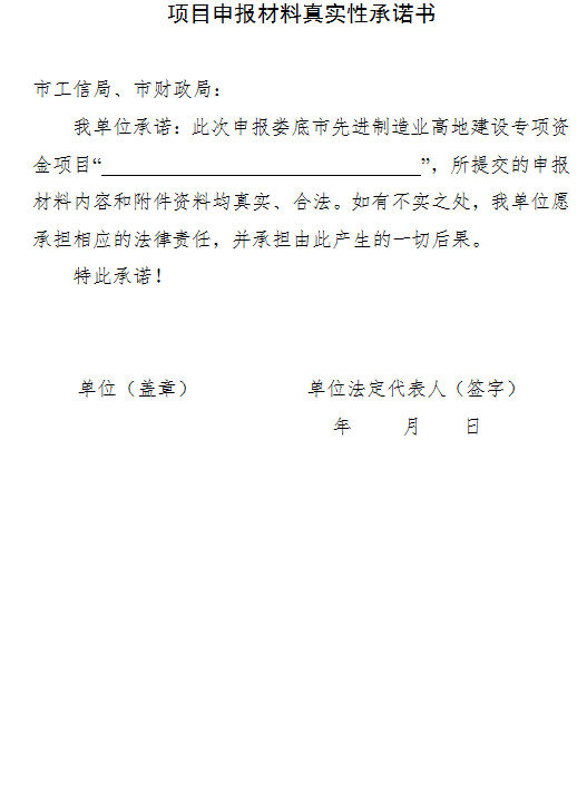 (三)其他要求。各縣市區(qū)須嚴(yán)格按照《婁底市先進制造業(yè)高地建設(shè)專項資金管理辦法》(婁財企〔2023〕147號)文件要求認(rèn)真組織項目申報工作,項目申報材料必須真實齊全。嚴(yán)禁違規(guī)推薦,弄虛作假,一旦查實有資料作假行為,不予受理其上報文件,并將影響到對轄區(qū)項目的支持,同時追究申報企業(yè)、審批人員的責(zé)任。