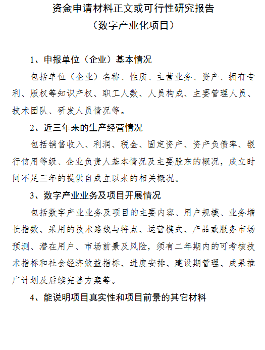 (1)數(shù)字產(chǎn)業(yè)化項目。主要支持互聯(lián)網(wǎng)、軟件和信息服務(wù)等服務(wù)業(yè)和電子信息制造、企業(yè)信息化建設(shè)等制造業(yè)企業(yè)項目;