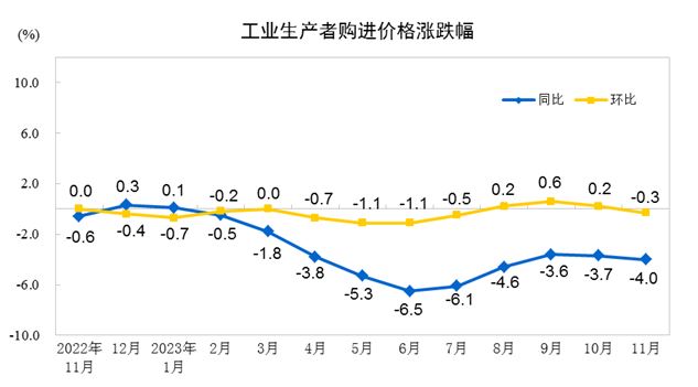 2023年11月份工業(yè)生產(chǎn)者出廠價(jià)格同比下降3.0% 環(huán)比下降0.3%